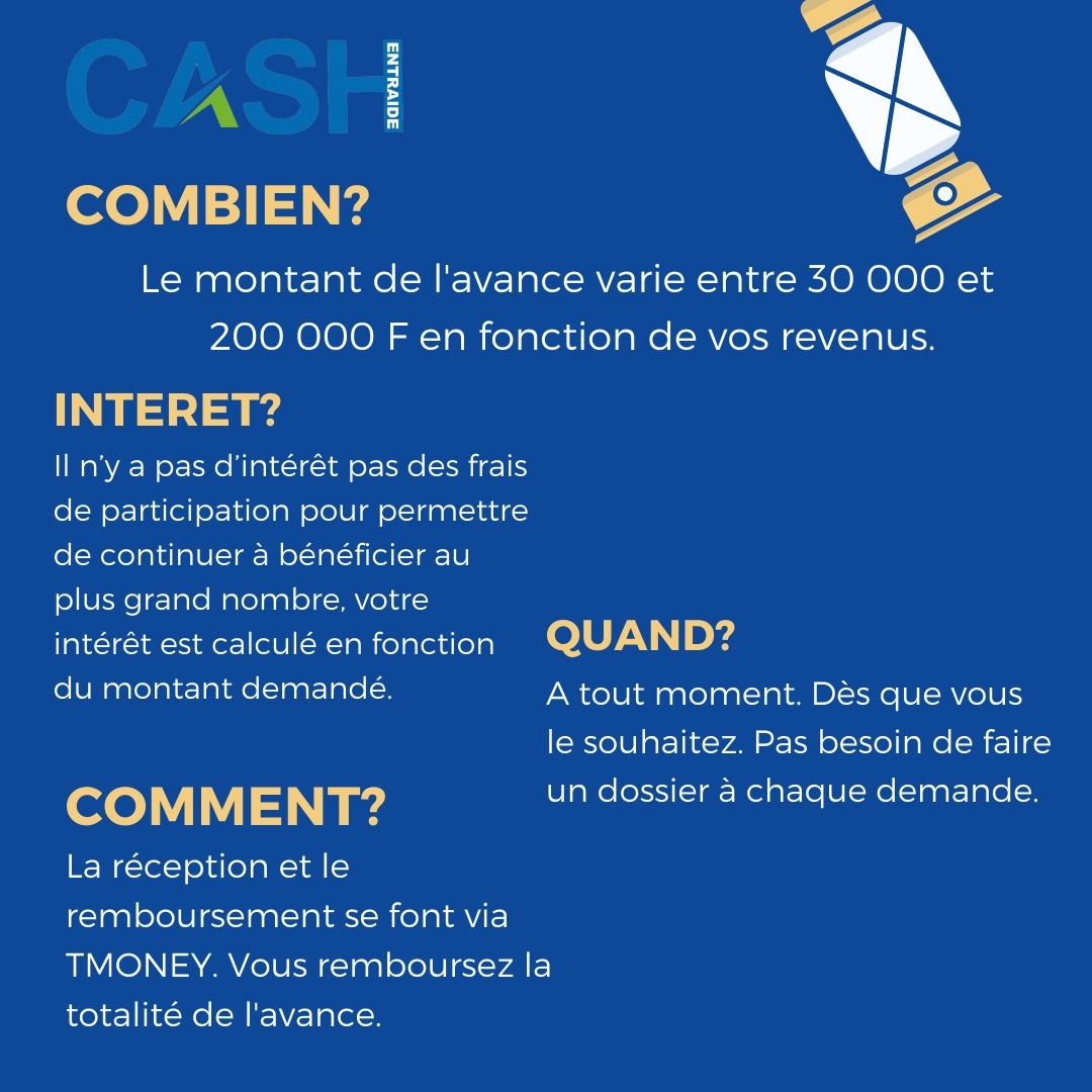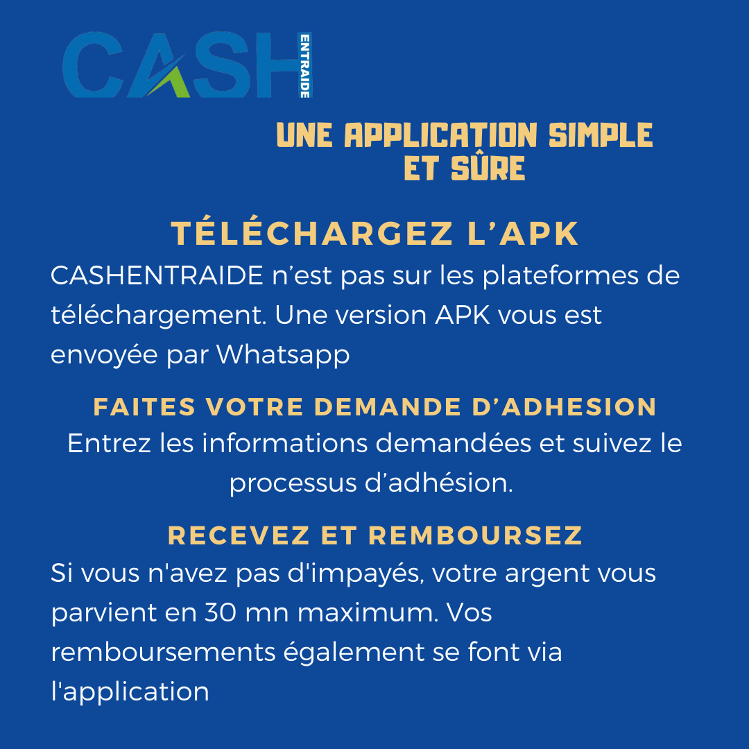 Vous recevez un nouveau code appelé CASH CODE. Vous pouvez désormais utiliser l'application et faire des demandes au besoin.